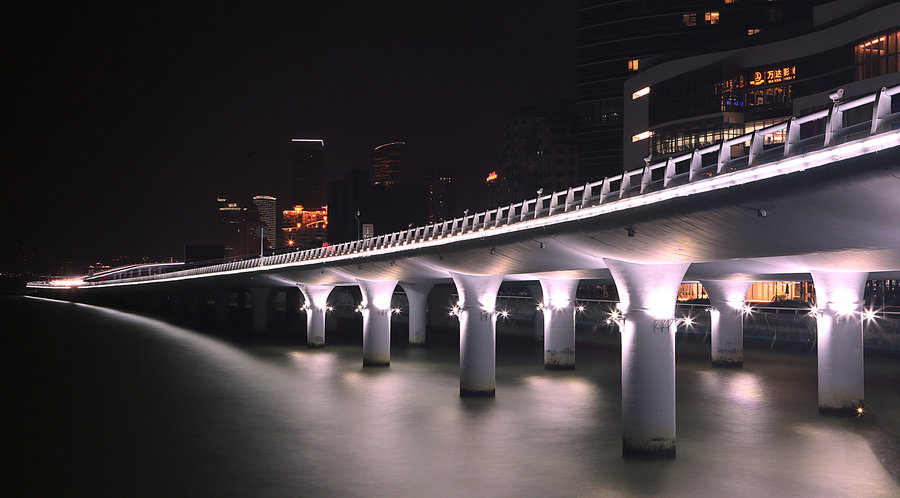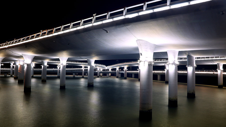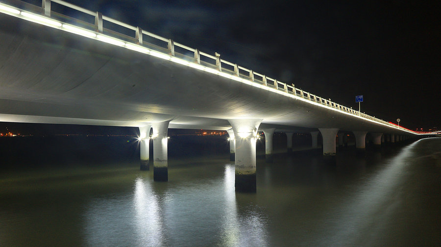 為了避免影響沿海景觀,橋梁照明采取附設(shè)在橋梁護(hù)欄上的照明燈而不設(shè)燈桿。由于演武大橋低橋位段的橋面標(biāo)高只有5米,被認(rèn)為是目前世界上離海平面最近的橋梁。