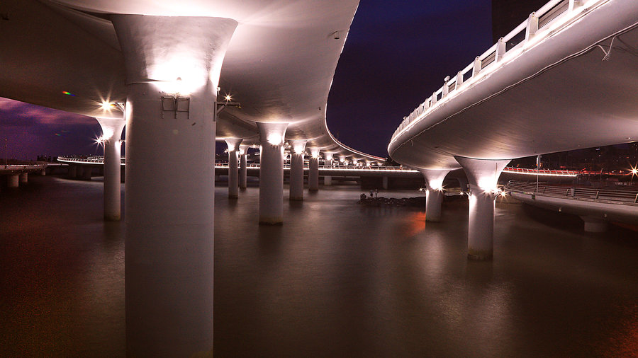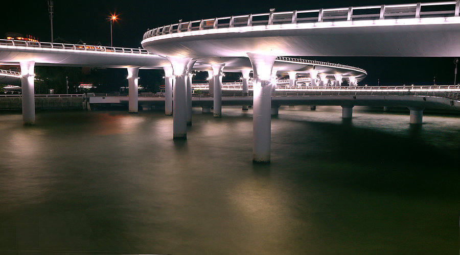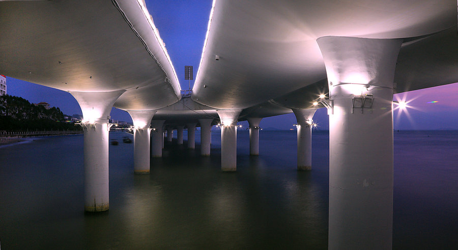 )位于廈門環(huán)島路海軍碼頭-演武路-白城段,全長2.2公里,由主橋體、成功大道互通立交、演武互通立交和白城互通立交組成。橋梁建設(shè)總投資5.6億元,于2003年9月通車。在結(jié)構(gòu)上采取了魚腹式梁,橢圓型墩,橋身通體漆為白色。